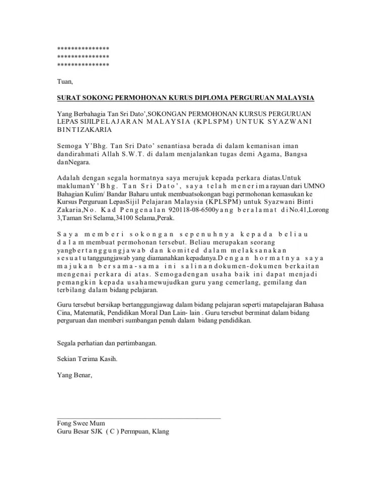 Surat sokongan kerajaan malaysia waqalah waqaf uktb blog. Minta sokongan contoh surat sokongan yb untuk kerja. Surat permohonan bantuan adalah jenis surat memohon bantuan samada kewangan pendidikan dana perniagaan rumah dan biasiswa dari sesebuah organisasi agensi dan . Surat rayuan mohon kerja semula contoh surat amaran hot topic. Disini adalah contoh dan formet surat sokongan simple yang korang boleh tiru .
